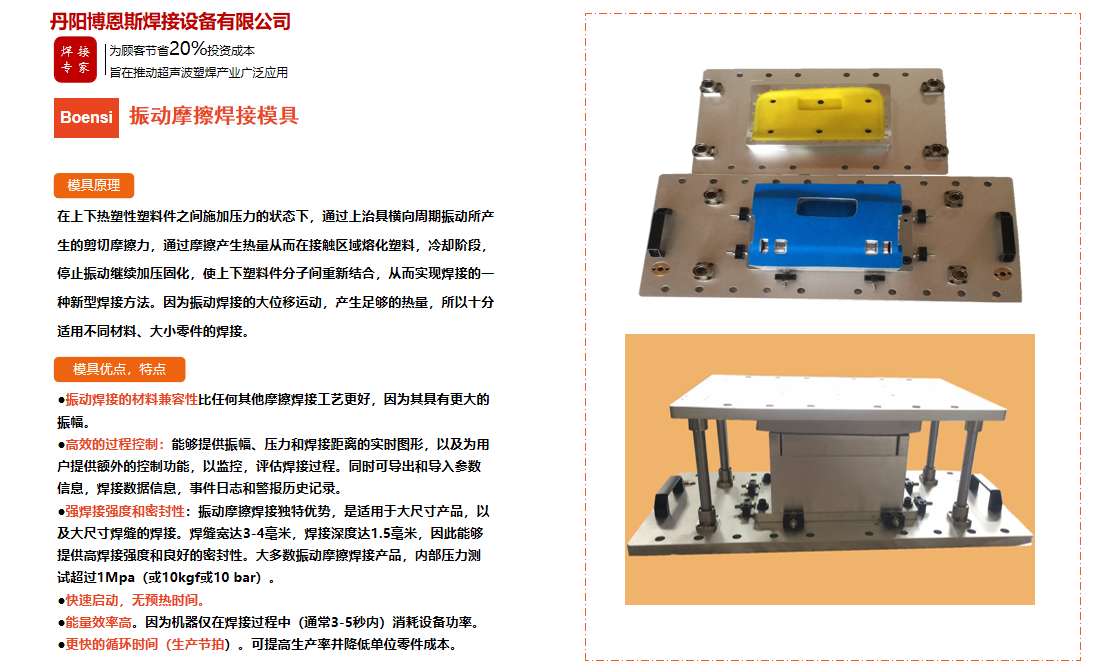 丹陽博恩斯焊接設(shè)備有限公司是塑料焊接領(lǐng)域集研發(fā)設(shè)計(jì)、生產(chǎn)制造、銷售服務(wù)為一體的企業(yè)。公司自成立以來堅(jiān)持“以人為本”的理念,組織了一支強(qiáng)大的技術(shù)研發(fā)團(tuán)隊(duì),攜多年來積累的豐富經(jīng)驗(yàn),并結(jié)合國際先進(jìn)塑料焊接技術(shù),根據(jù)市場(chǎng)需要,不斷開發(fā)具有核心競(jìng)爭(zhēng)力的新產(chǎn)品。公司具有很強(qiáng)的非標(biāo)機(jī)械研發(fā)、設(shè)計(jì)、生產(chǎn)能力,可為廣大客戶定制各類專用機(jī)械設(shè)備。公司設(shè)計(jì)生產(chǎn)的塑料焊接設(shè)備已廣泛應(yīng)用于汽車、電子、家電、醫(yī)療器械、無紡布...